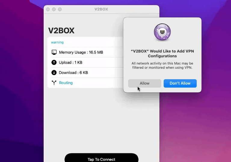 برای اتصال به VPN در مک V2Box را نصب کنید و سپس مراحل راه اندازی برنامه را با دقت انجام دهید.